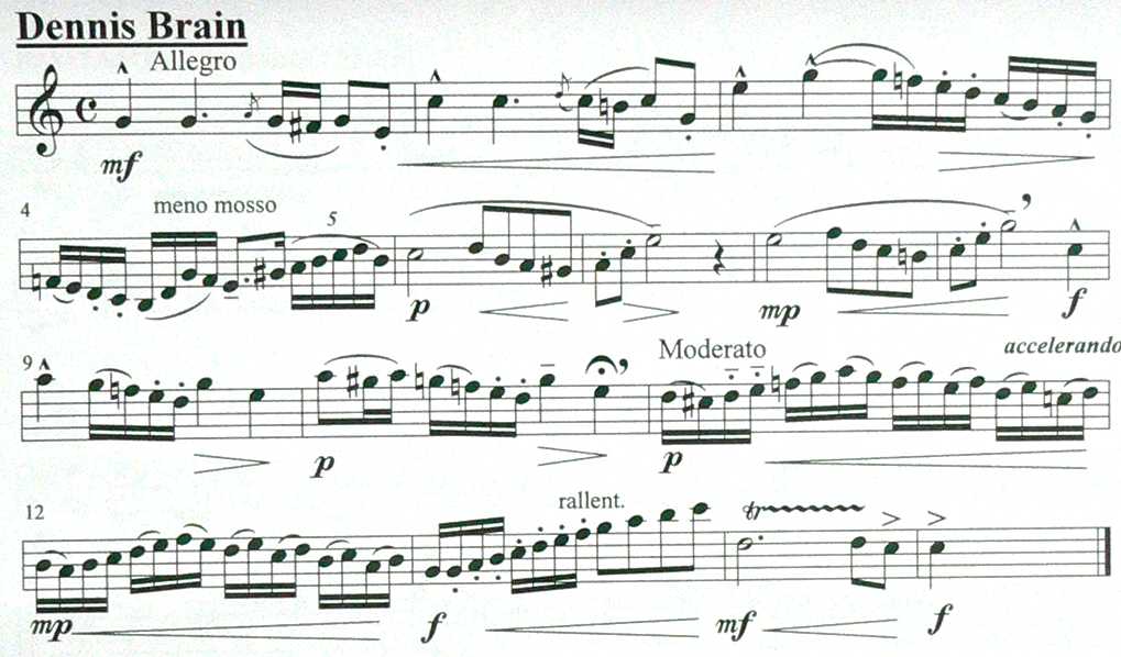 Herbert, niemand hat vom Musizierstil Dennis Brains gesprochen (z.B. "das da-da-dap-da-da-dap"), sondern nur von der Wirkung seiner Kadenzen. Und bitte, direkt auf Briefe einghen. Ich wiederhole hier: Es ist nicht wichtig, was wie spielen sondern WIE". Das gilt auch für die Kadenzen. Man muß sie eben aufregend, aber mit dem geforderten Respekt spielen. Dazu haben wir, ohne den Text zu verändern, viele Mittel, die freilich besonders durch "Zuhören" einzeln erarbeitet werden müssen. Dazu muß man sich aber vorher erst einmal von technischen und textlichen Problemenm frei machen. Dann ist nichts mehr langweilig ! Selbst das einfache, von mir oft zitierte Oberon-Solo !